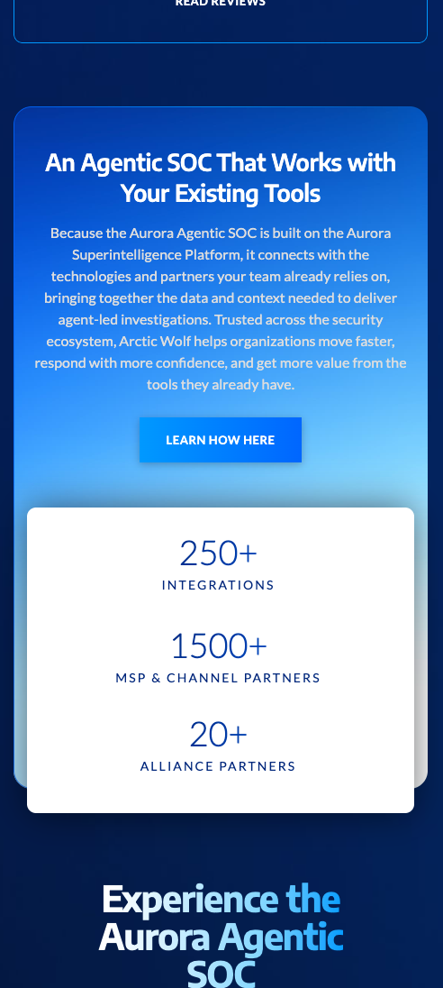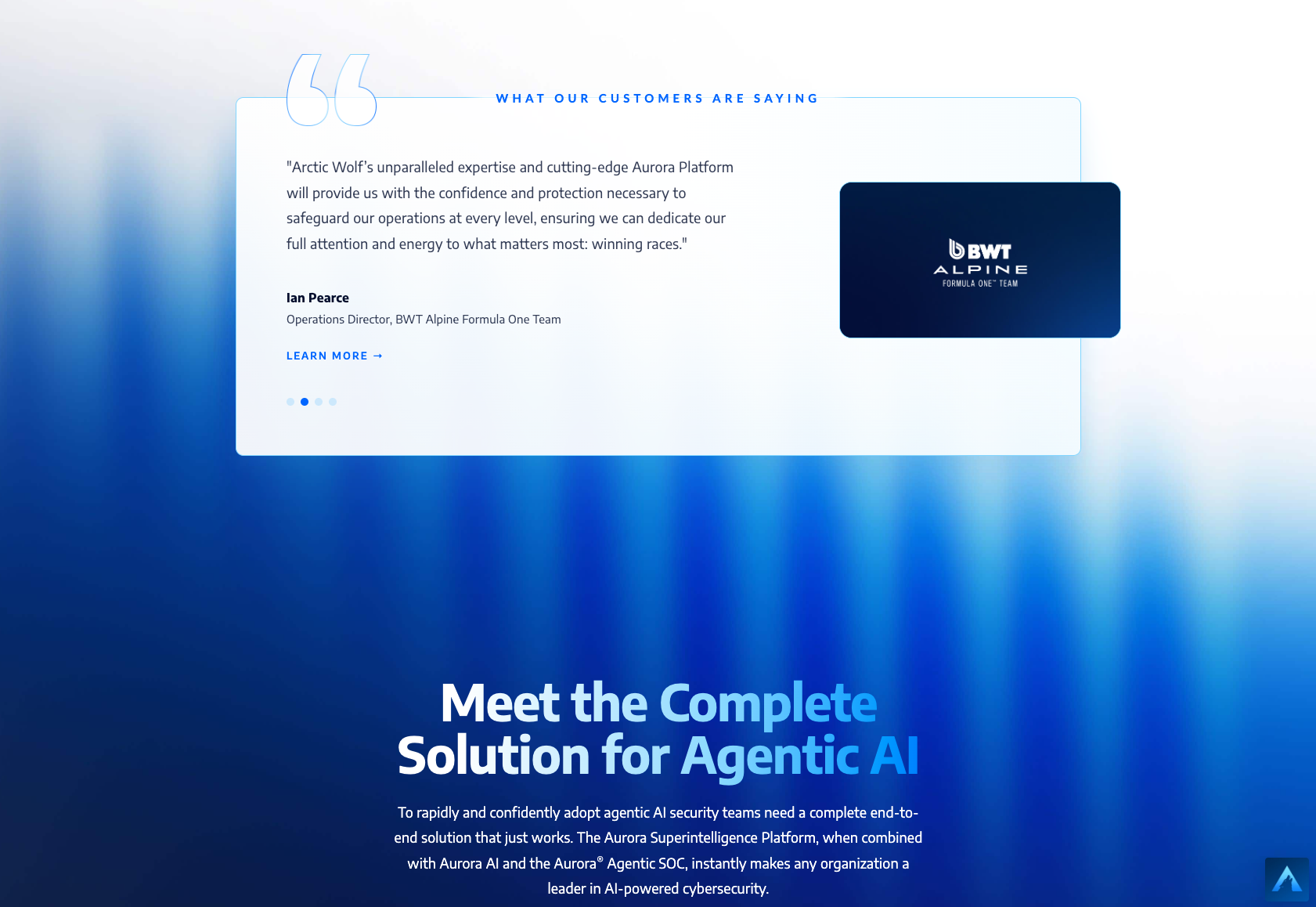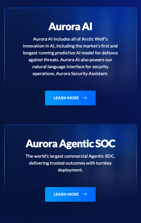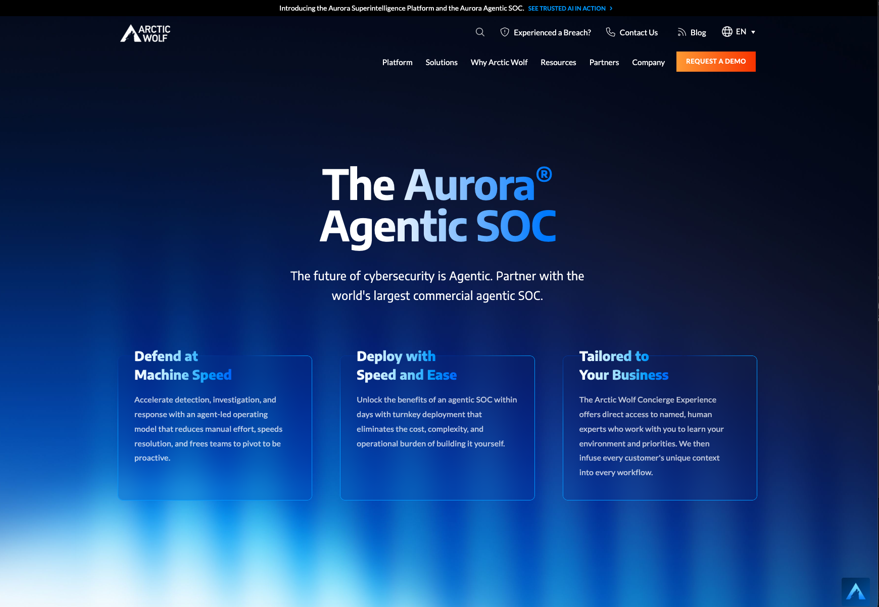 In preparation for a major RSA Conference announcement, I collaborated with our agency to redesign and build two landing pages highlighting Arctic Wolf’s core offerings: the Aurora Superintelligence Platform and the Aurora Agentic SOC. The project timeline was tight, with intensive design and development efforts continuing right up to the Monday launch.