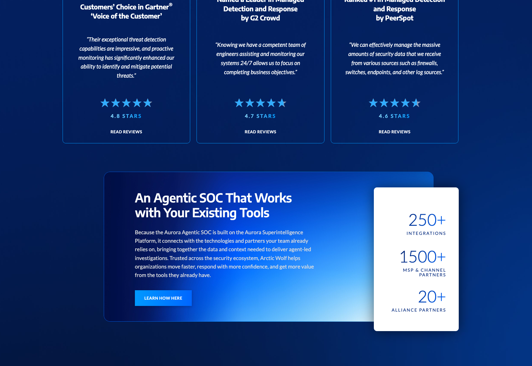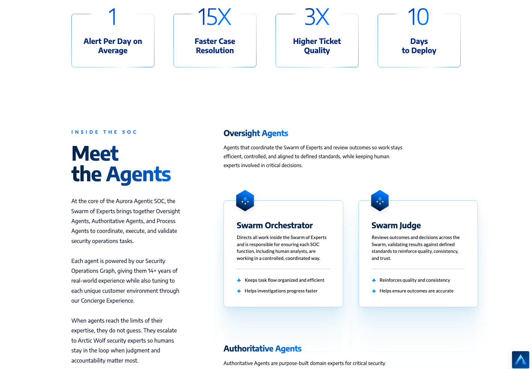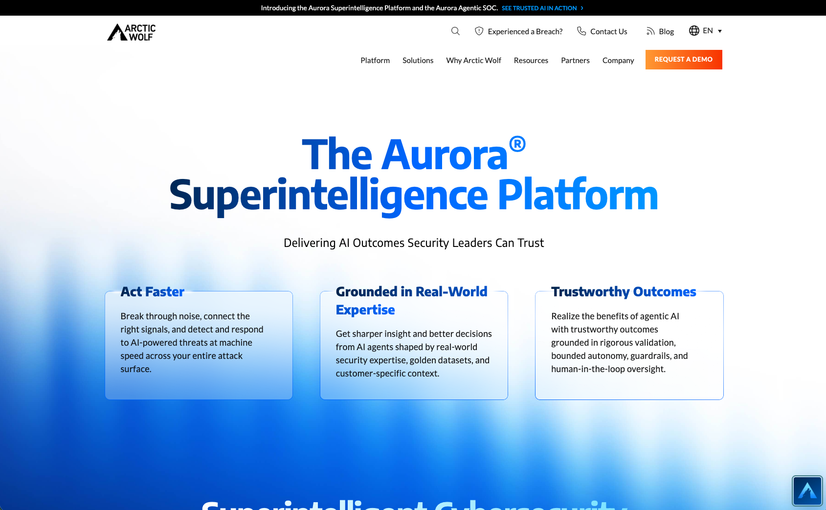 In preparation for a major RSA Conference announcement, I collaborated with our agency to redesign and build two landing pages highlighting Arctic Wolf’s core offerings: the Aurora Superintelligence Platform and the Aurora Agentic SOC. The project timeline was tight, with intensive design and development efforts continuing right up to the Monday launch.